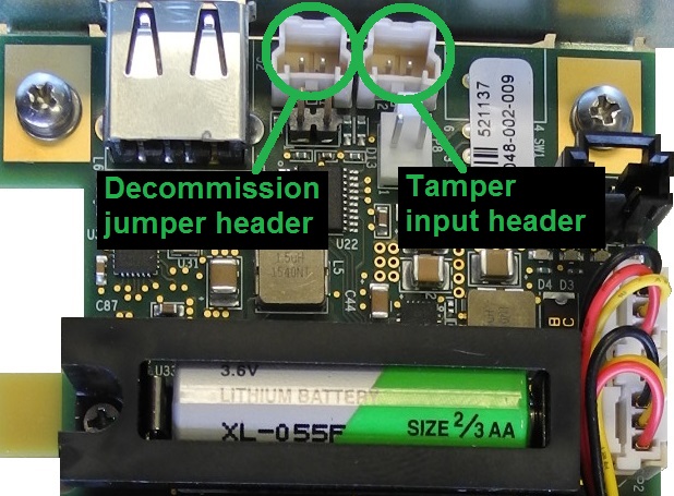 2.Connect the chassis intrusion connector to the tamper input header on the card, shown below.