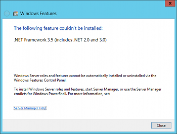 If your Windows Server 2012 instance is not properly configured with .NET Framework, the following alert message appears during the Luna Client installation: