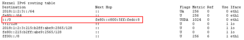 The following example for the eth2 interface is not supported since it has both DHCP, 2018:1:2:3::dcd5/128 , and SLAAC, 2018:1:2:3:215:b2ff:fea8:fd44/64, global addresses (i.e. entries with “scope global”).