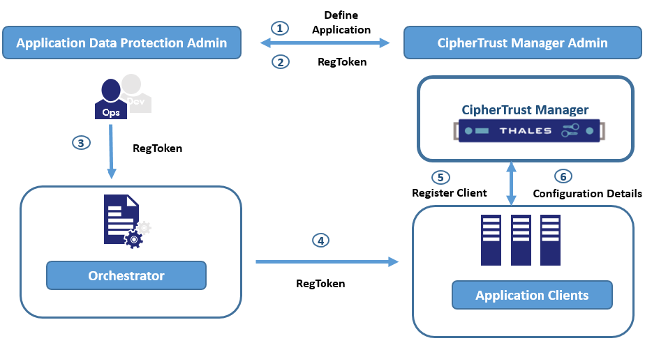 The CipherTrust Administrator sends a Registration Token to the Application Data Protection Administrator.