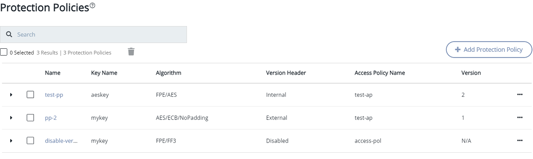 | Algorithm | Name of the algorithm associated with a protection policy. |