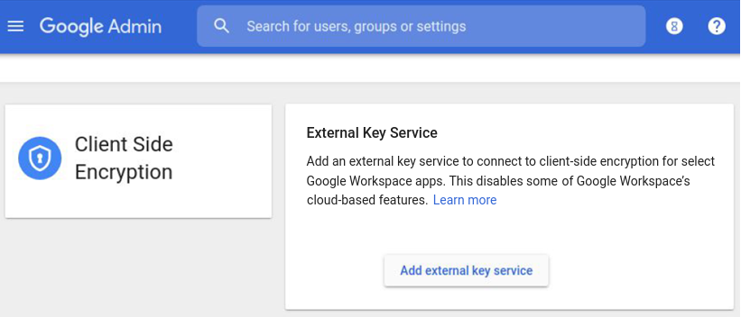 Specify Name of external key service. This name will appear in error messages if Google Workspace cannot contact the key service.