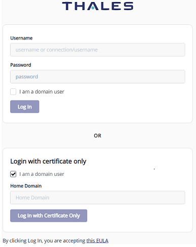 For root domain users, the CipherTrust Manager doesn't have the option to pass the target domain from UI. The same is applicable for Password and Certificate based login. To pass the domain in user request, use API or curl.
