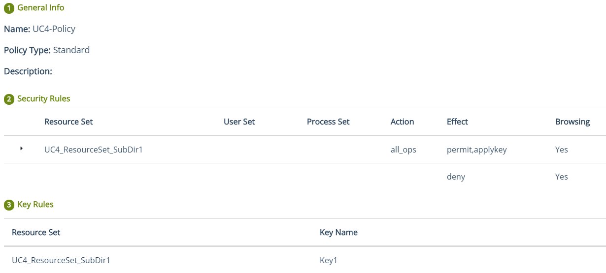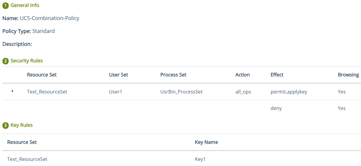 Create the desired policy type using the resource set, the user set, and the process set created above. Refer to Creating Policies for details.