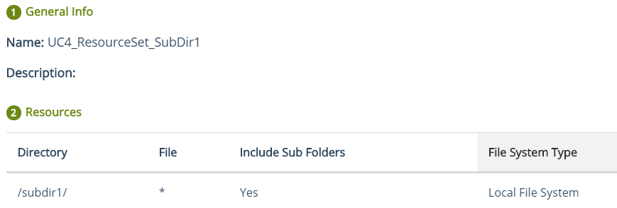 Create a resource set. Specify the details of the subdirectory (subdir1) in the resources. Refer to Creating Resource Sets for details.