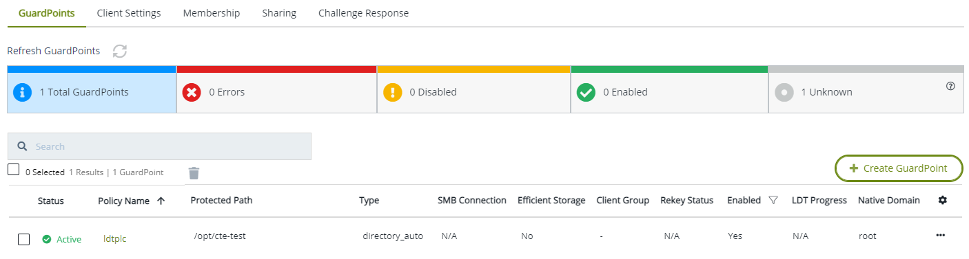 A GuardPoint specifies the path on the client that is to be protected with different access and encryption policies. GuardPoint is configured by specifying the guard path, policy, and other policy/path specific configuration parameters.