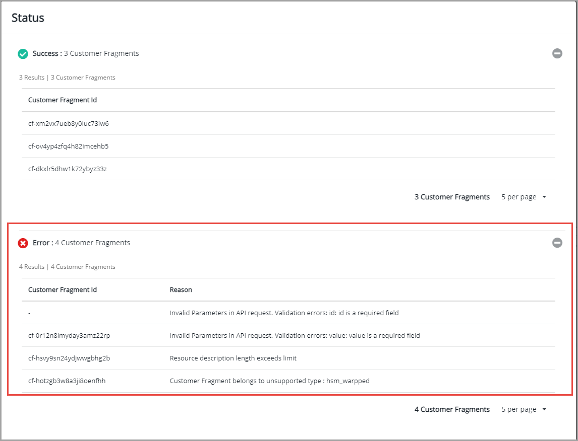 The customer fragments in the CipherTrust Manager are not domain scoped and can be created/managed only in the root domain. A user should belong to the admin group in the root domain to perform the customer fragment operations.