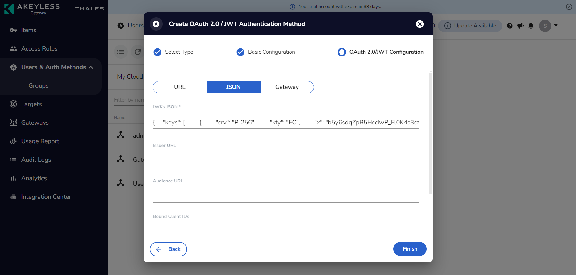Navigate to Users & Auth Methods > New > Oauth2.0/JWT.