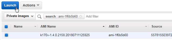 In the left pane, under the Images, select AMIs and search for the AMI (e.g. ami-1f6b5b60) that was provisioned for you by the SafeNet Cloud Provisioning System.