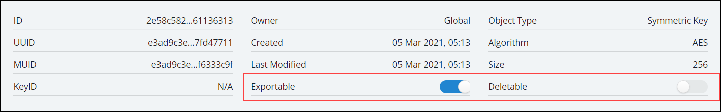 You can also enable the Deletable option in this section if you want a CipherTrust Manager Administrator to be able to delete the key.