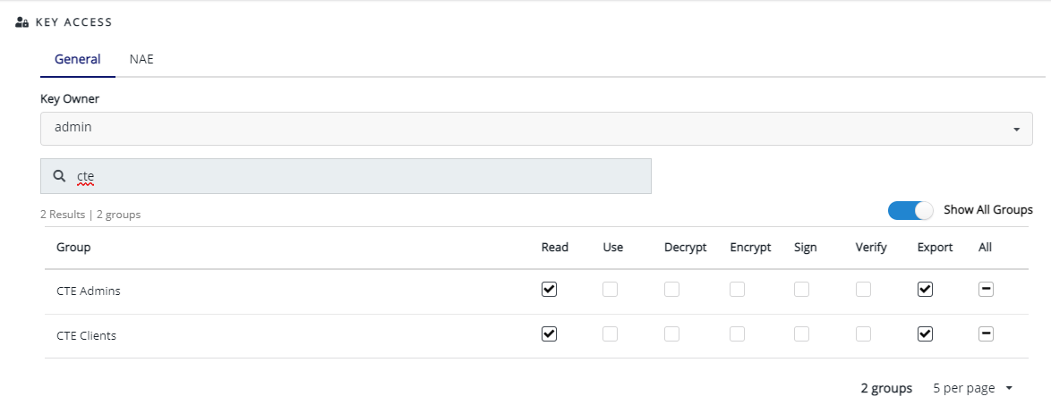 b. Click the Read and Export option for both the CTE Admins and CTE Clients groups.