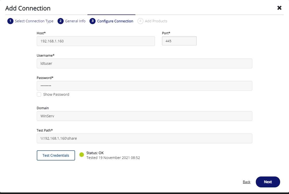 In order for LDT to access that CIFS share and encrypt the data, you must provide the credential data when you add a CIFS share as a connector in CipherTrust Manager: