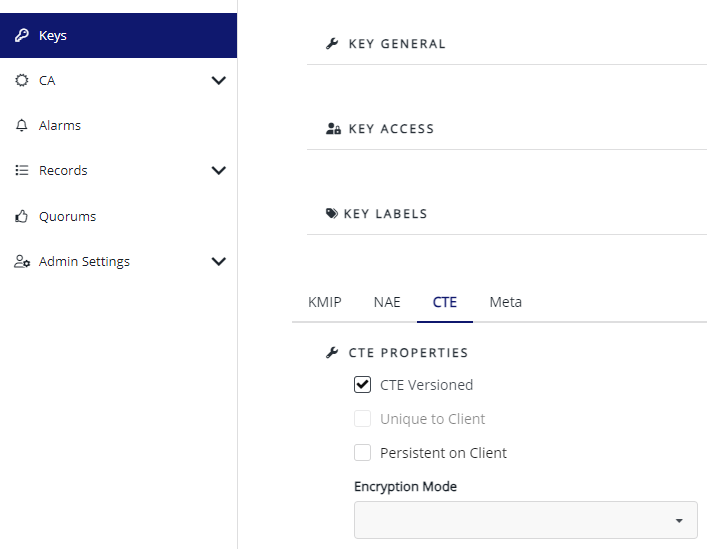 a. In CipherTrust Manager, navigate to the key section in the left navigation bar.