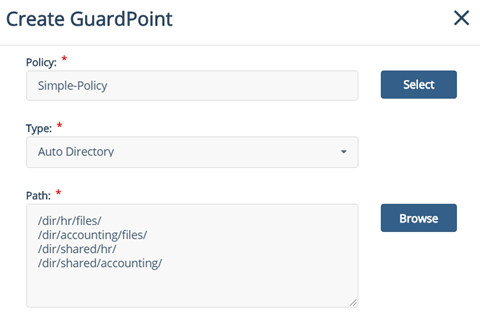 In the Path field, enter the directories you want to protect with this policy or click Browse to select them from a explorer window.