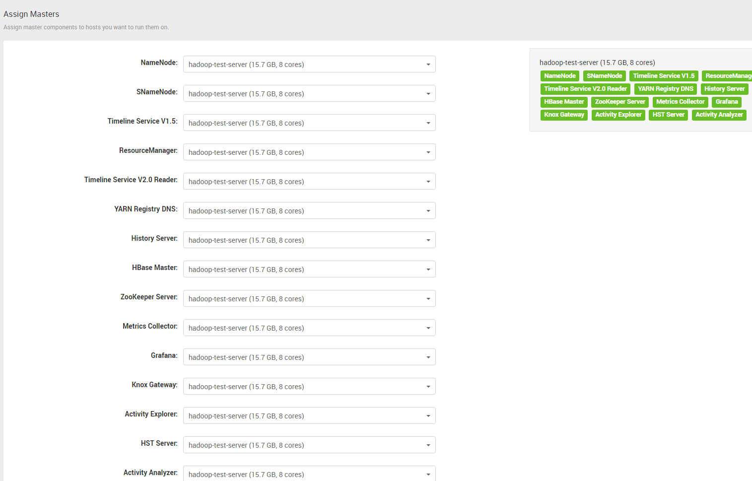 In our example, as we're only using one node, so this will be our master for all the services. In production environments, you can select other nodes as the service Master.