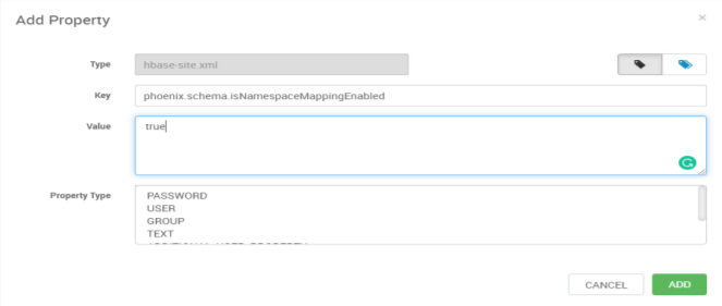 Apache Phoenix requires additional modification. You need to enable namespace mapping and map the system tables to the namespace. For this procedure we are using the Ambari UI.