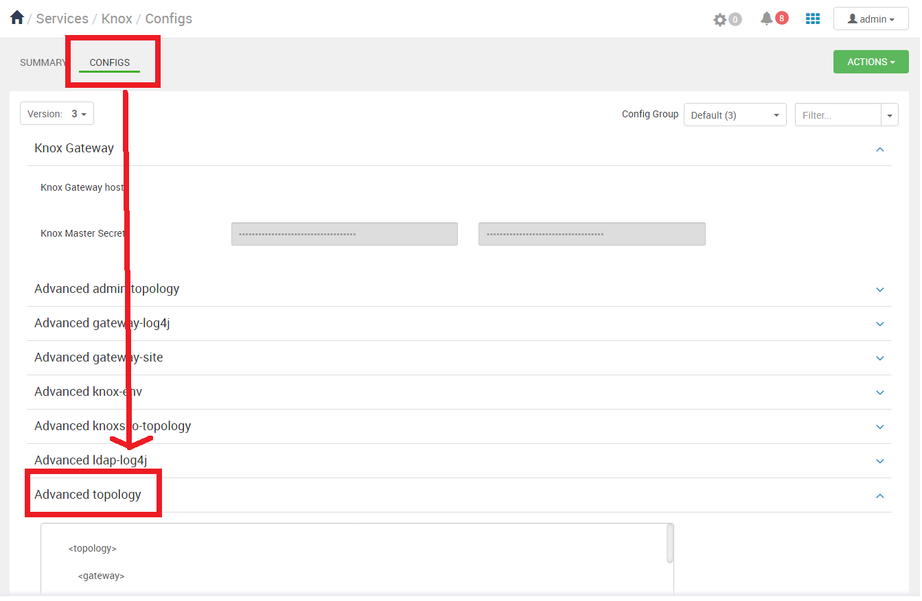 In the Ambari toolbar on the left, expand Services, then click Knox.