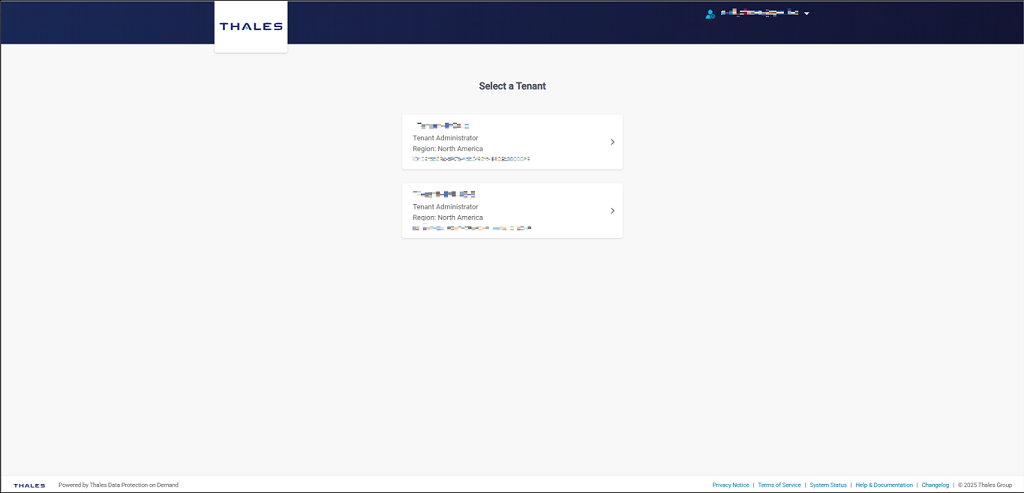 Click Change Tenant Account in the user interface panel. The Tenant Selection page displays.