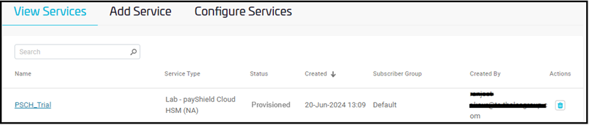 The newly created service goes in Provisioning state. Thales will contact you with further details at the earliest. Once the payShield is allocated, the Provisioning state changes to Provisioned and the service will be visible under the View Services table in DPoD.