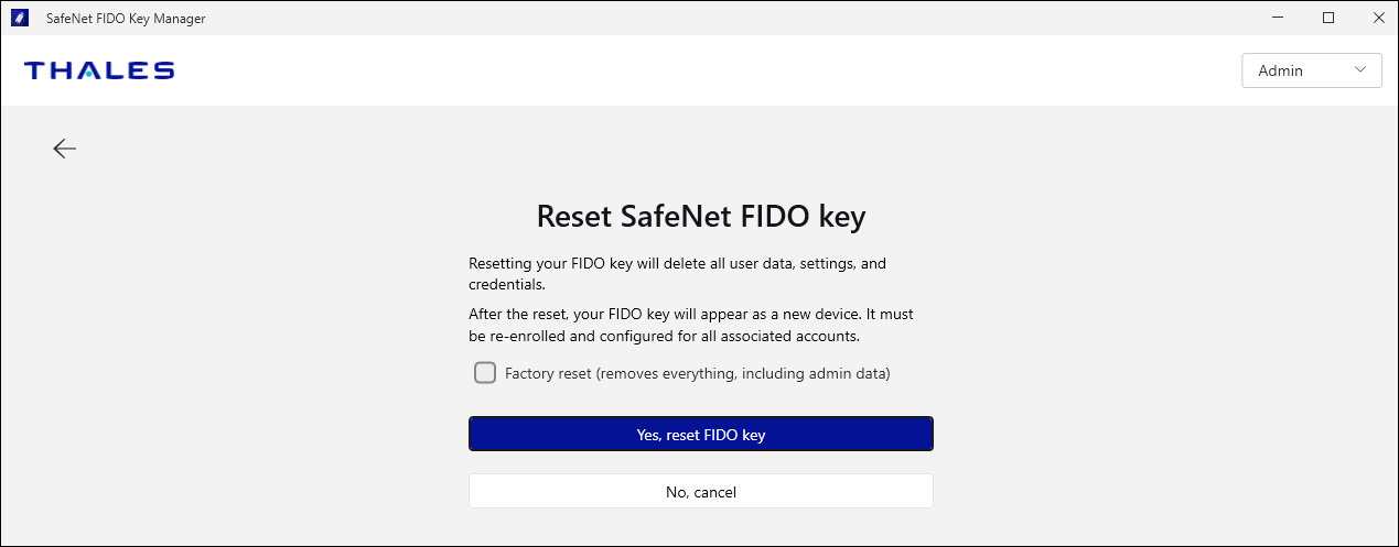 Select the Reset FIDO Key option.