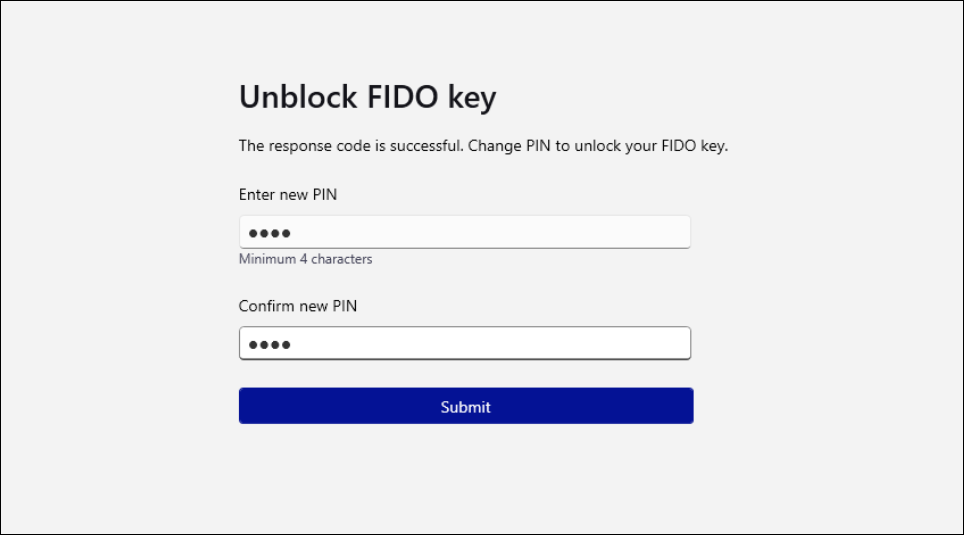 Enter the new PIN, confirm, and then click Submit.
