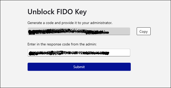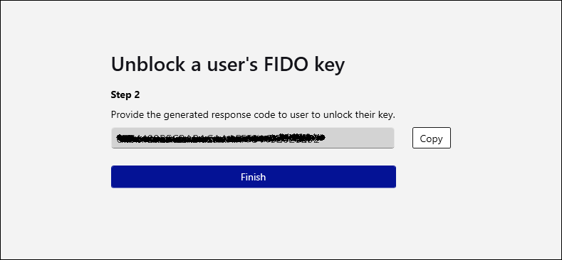 Copy the response code and share with the user to unblock their FIDO Key.