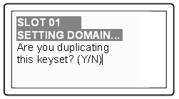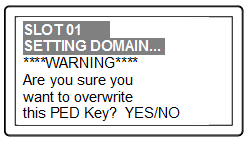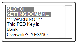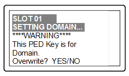 When you confirm that you do wish to overwrite whatever is (or is not) on the currently inserted key, with a Cloning Domain generated by the PED, the PED asks: