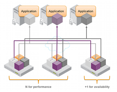 The network topography of the HA group is generally not important to the proper functioning of the group. As long as the client has a network path to each member the HA logic will function. Keep in mind that having a varying range of latencies between the client and each HA member causes a command scheduling bias towards the low-latency members. It also implies that commands scheduled on the long-latency devices have a larger overall latency associated with each command. In this case, the command latency is a characteristic of the network; to achieve uniform load distribution ensure that latencies to each device in the group are similar (or use standby mode). Gigabit Ethernet network connections are recommended.