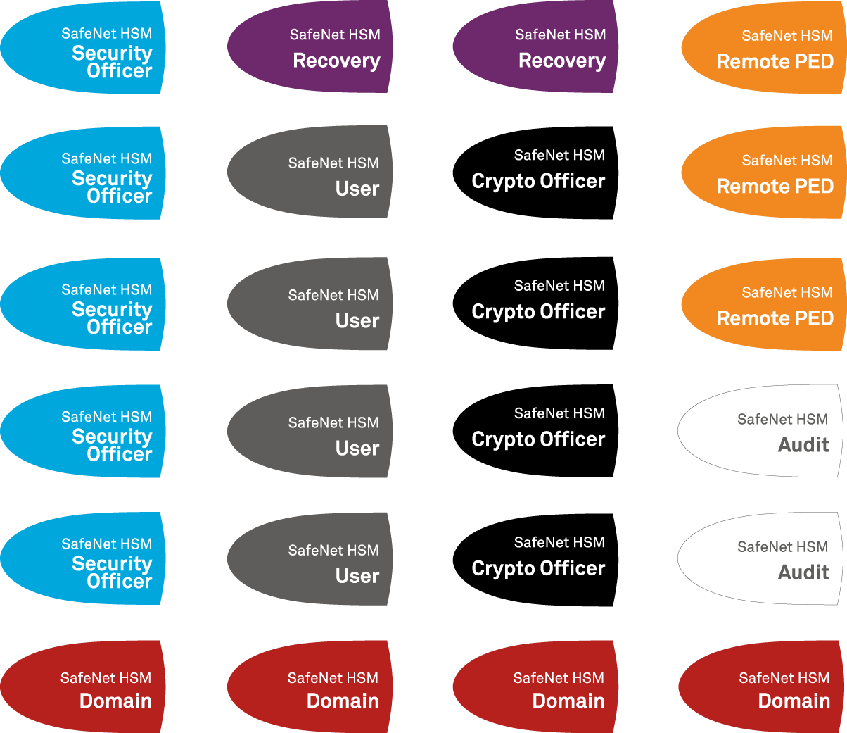 You are not required to have a PED Key of each color, above. The ones that are mandatory for use of your PED-authenticated HSM are the blue SO key, the red domain key, and the black Crypto Officer key.