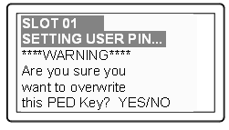 6.This is potentially serious business (if you unintentionally overwrite a PED Key that is needed for other purposes), so SafeNet PED asks one more time if you truly intend to overwrite the key's content.