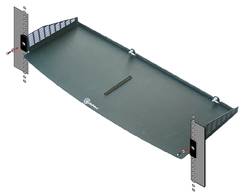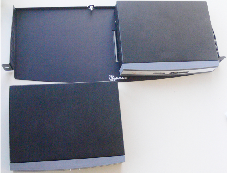 1.If you are using the SafeNet SafeNet USB HSM rack-mount shelf, mount the shelf in a suitable equipment rack. Use fasteners appropriate to your brand of equipment rack. The shelf and the SafeNet USB HSM units are light-weight and therefore are adequately secured at the front only. Do not mount more than two SafeNet USB HSM devices, or any non-SafeNet USB HSM equipment, on the shelf.