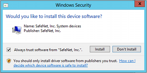9.If Windows presents a security notice asking if you wish to install the device driver from SafeNet, click Install to accept.