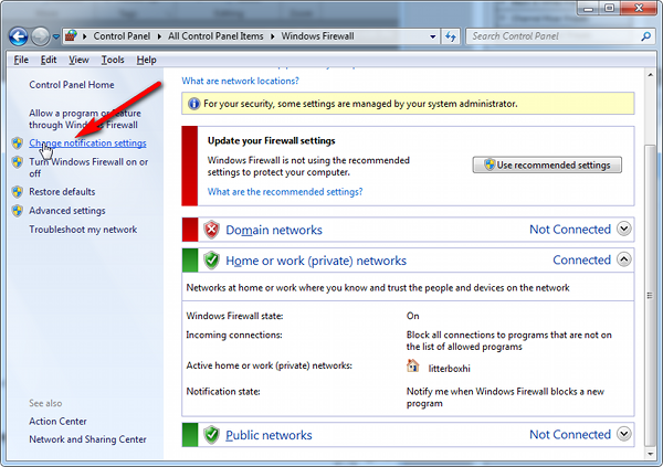 4.In the dialog Customize settings for each type of network, go to the appropriate section and activate Notify me when Windows Firewall blocks a new program.