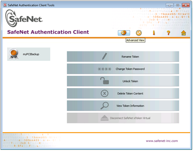 2.Launch SafeNet Authentication Client Tools from Windows > All Programs > SafeNet > SafeNet Authentication Client, and click the Advanced View icon.