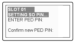 Enter a new PED PIN Confirm new PED PIN >Press Enter for no PED PIN >Input 4-16 digits on the PED keypad |