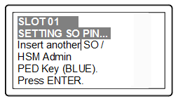 Slot 01 SETTING SO PIN... Insert a SO / HSM Admin PED Key Press ENTER. |