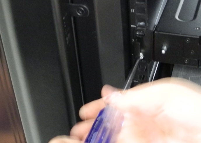 3.Secure the rear end of each mount to the rack with one of the four wide flat-headed screws.