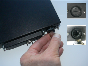 Use the battery compartment cover to push the battery into the compartment, against the spring tension. Maintaining the pressure, align the two tabs on the inside of the cover with the two recessed indentations at the top and bottom of the compartment opening. With a little jiggling and a few trial pushes, the tabs should settle into those recesses, allowing the cover to seat flush with the front of the SafeNet Luna Backup HSM. Maintain the inward pressure and twist the cover ¼ turn clockwise to lock it in place. The battery is installed. |