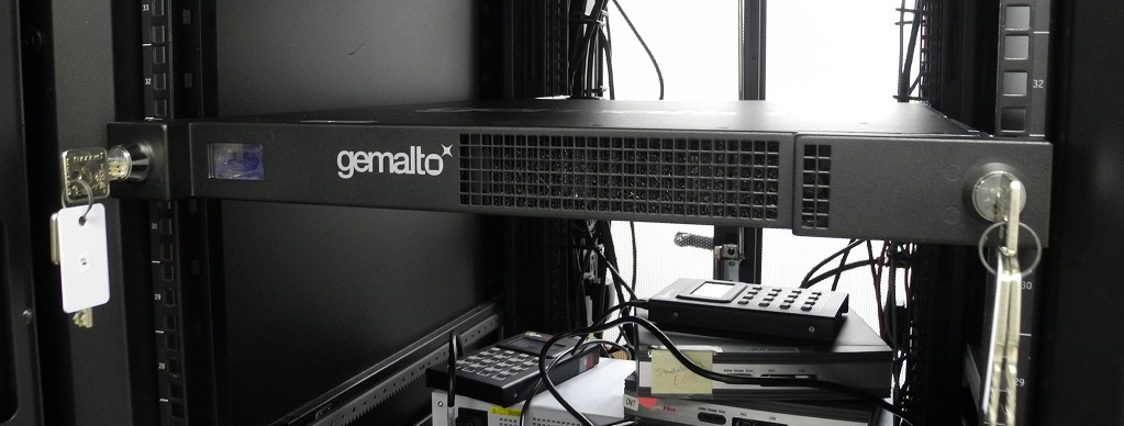 Your order may have included an optional front locking bezel (pictured below). The locking bezel fits over the HSM's faceplate for maximum physical access security. Certain security standards require the use of these physical access measures.