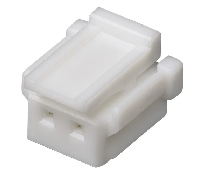 The protective plug is an unpopulated Molex Sherlock 2mm connector housing (no conductors installed). It is held in place by a latch that engages a small tab on the shroud of the header. The interior of the plug has two channels corresponding to the header pins. Those channels are separated by a divider to keep the header pins physically and electrically isolated from each other.