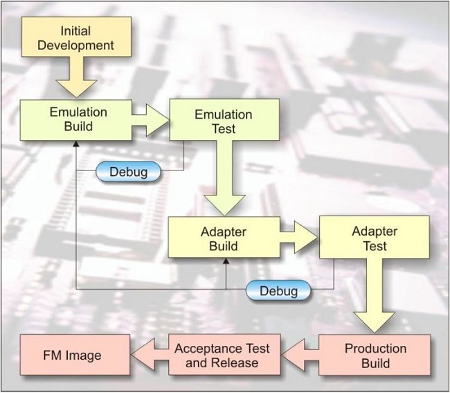 The FM produced during the previous steps should now be completely tested in emulation mode to ensure correct operation. Should errors be found in the emulation build, the developer should repeat the build/test/debug cycle until successful operation is confirmed.