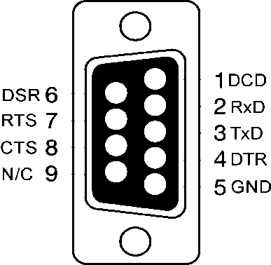 The serial port on the USB-to-serial cable, illustrated below, uses a standard RS232 male DB9 pinout: