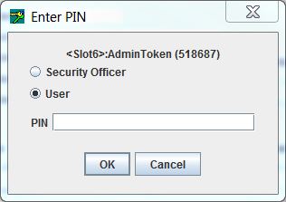 If the hardware has not been initialized, the utility will prompt the operator to initialize the Admin Token. For full details regarding initial configuration, please refer to Cryptoki Configuration. Initialization is necessary for the Admin SO to create the Administrator user.