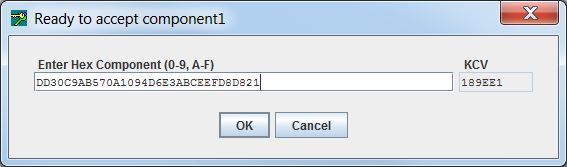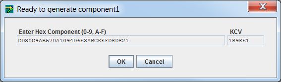10.Record the Component Value and Key Check Value (KCV), both given in hexadecimal, displayed in these dialogs. The KCV for the generated component is used to verify correct entry of the component during manual key component entry.