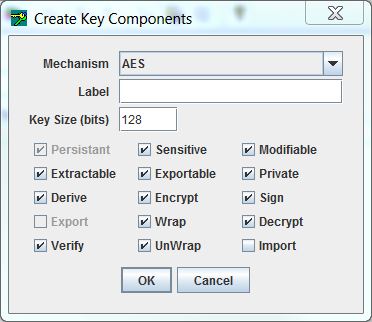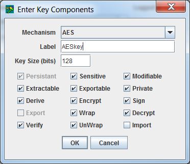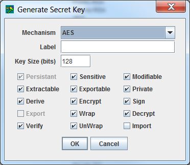 2.Choose the type of key you wish to generate from the Mechanism drop-down box. If you are generating an AES, CAST, RC2 or RC4 key, you must specify a Key Size.
