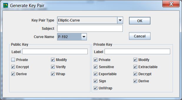 1.Select an initialized token from the Select a Token drop-down box and click on the Key Pair button in the toolbar. Alternatively, select Options> Create> Key Pair from the menu bar.