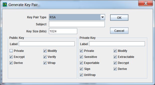 4.Label both the public key and the private key. Check or uncheck any available boxes to select the desired key attributes.