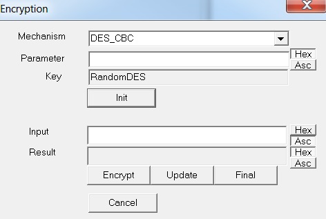 The Key field shows the type of key being used, and the Mechanism list shows mechanisms valid for the chosen key. A parameter for the mechanism should be entered if required. See SafeNet ProtectToolkit-C Mechanisms for more information on mechanism parameters.