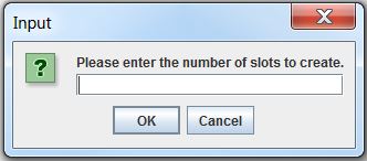 To create slots on the HSM, select File>Create Slot, or click Create Slots on the toolbar. A dialog will prompt for the number of slots to be created.