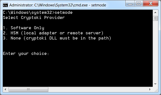 1.Execute setmode from the command line or open the SetMode.cmd file in the SafeNet install directory (default path: C:\Program Files\SafeNet\Protect Toolkit 5\Protect Toolkit C SDK\bin\SetMode.cmd).